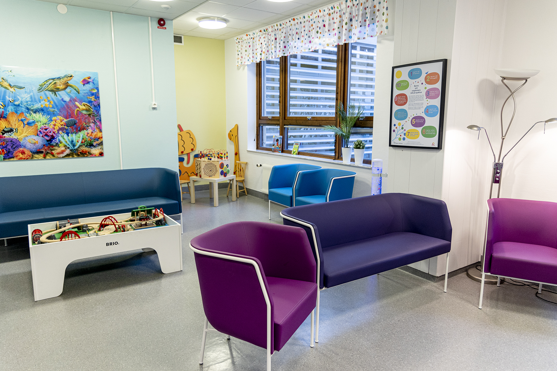 När du kommer till dagvårdsmottagningen möts du av ett lekvänligt och avslappnat väntrum.