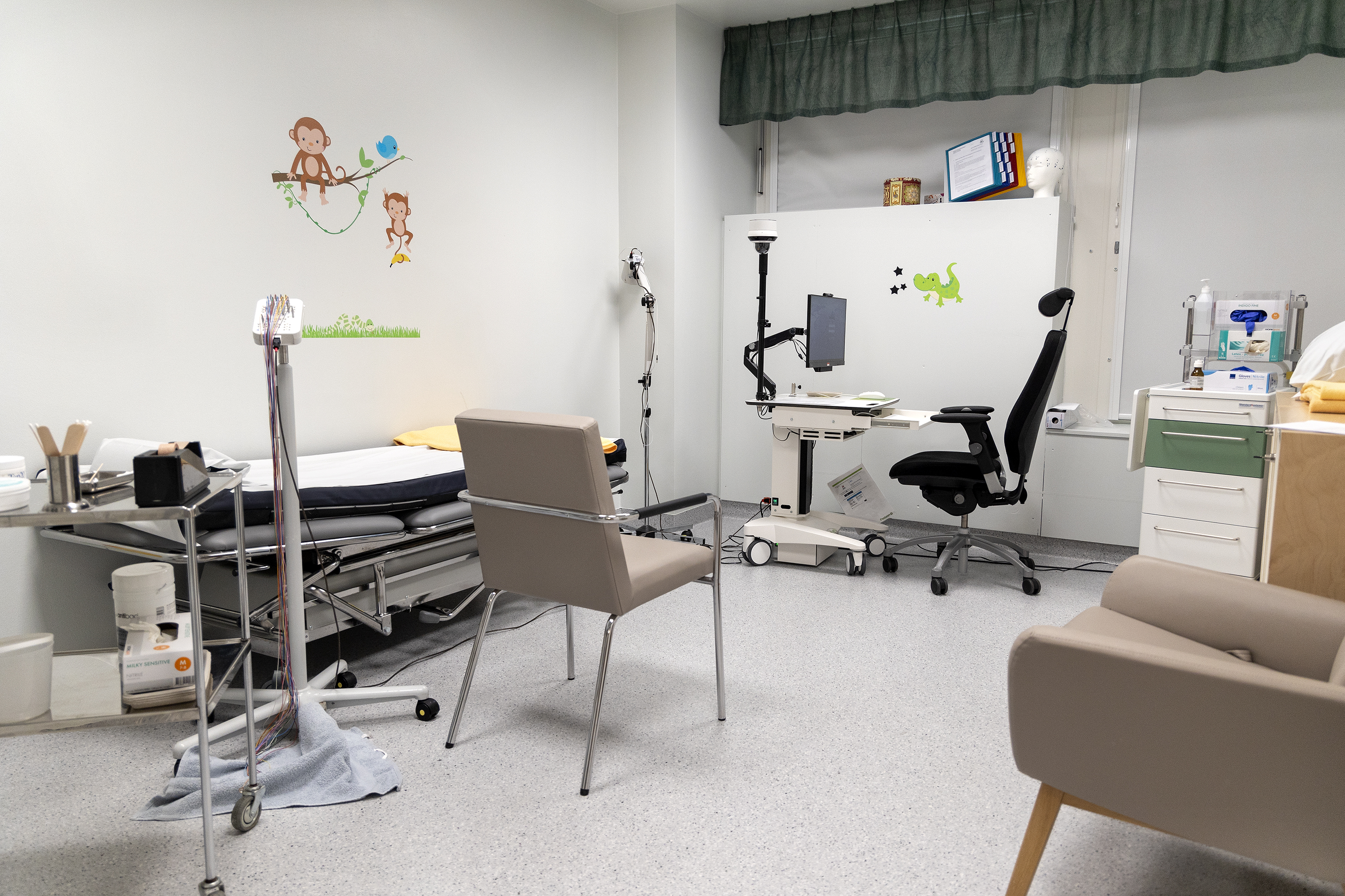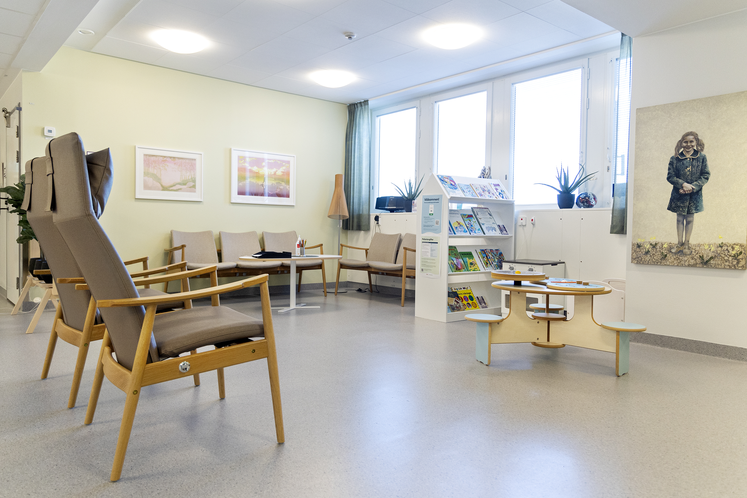 När du kommer till oss får du först sitta i vårt väntrum. Här finns en toalett nära och också några böcker och leksaker.