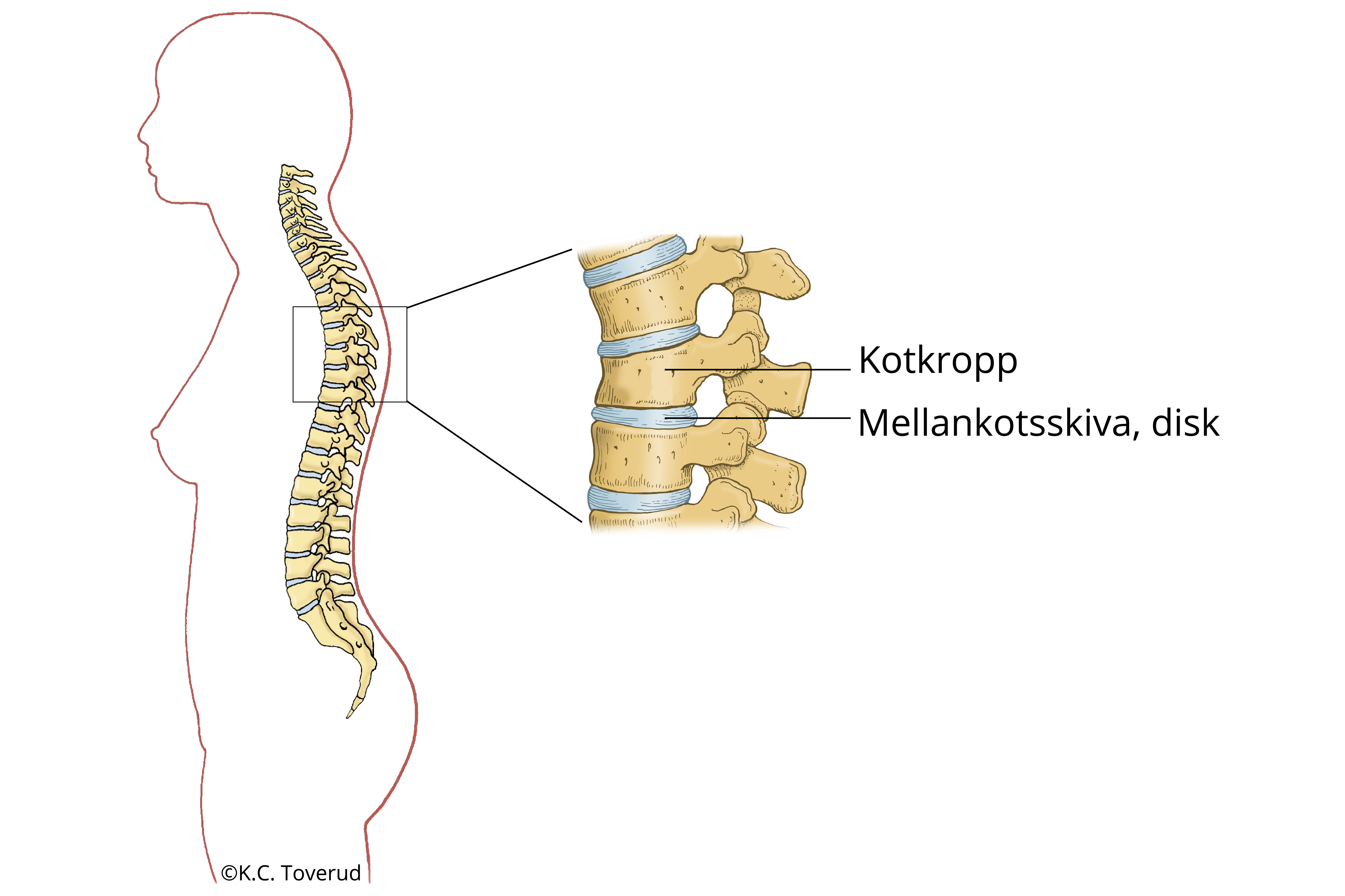 Mellan kotorna i ryggraden finns mjuka kuddar av brosk. De kallas för diskar eller mellankotsskivor. Diskarna är viktiga för att ryggen ska kunna röra sig. De fungerar också som stötdämpning.