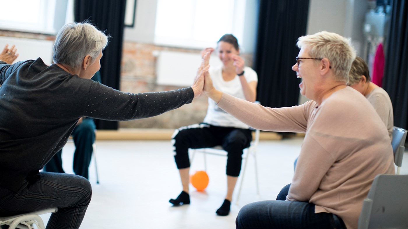 Under Rehab-dansen tränar vi muskelstyrka, koordination, balans, finmotorik, koncentration samt kognitiva, psykiska och sociala förmågor.