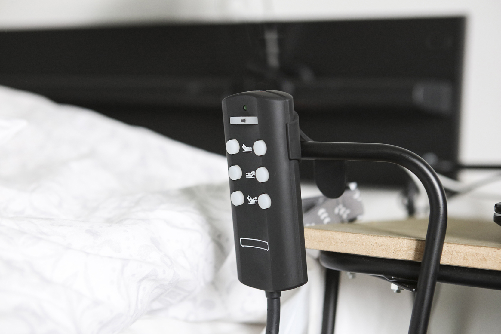 Det finns speciella sängar och tillbehör till sängar som gör att höjden på sängen kan justeras. På vissa sängar kan du även justera liggställningen och fälla upp ryggen så att det blir lättare att resa sig upp. Det finns grindar som du kan montera på sängen så att du inte faller ur. Det finns också bågar som filtar och täcken i sängen kan vila på. Då undviker du att få tryck på kroppen när du ligger.