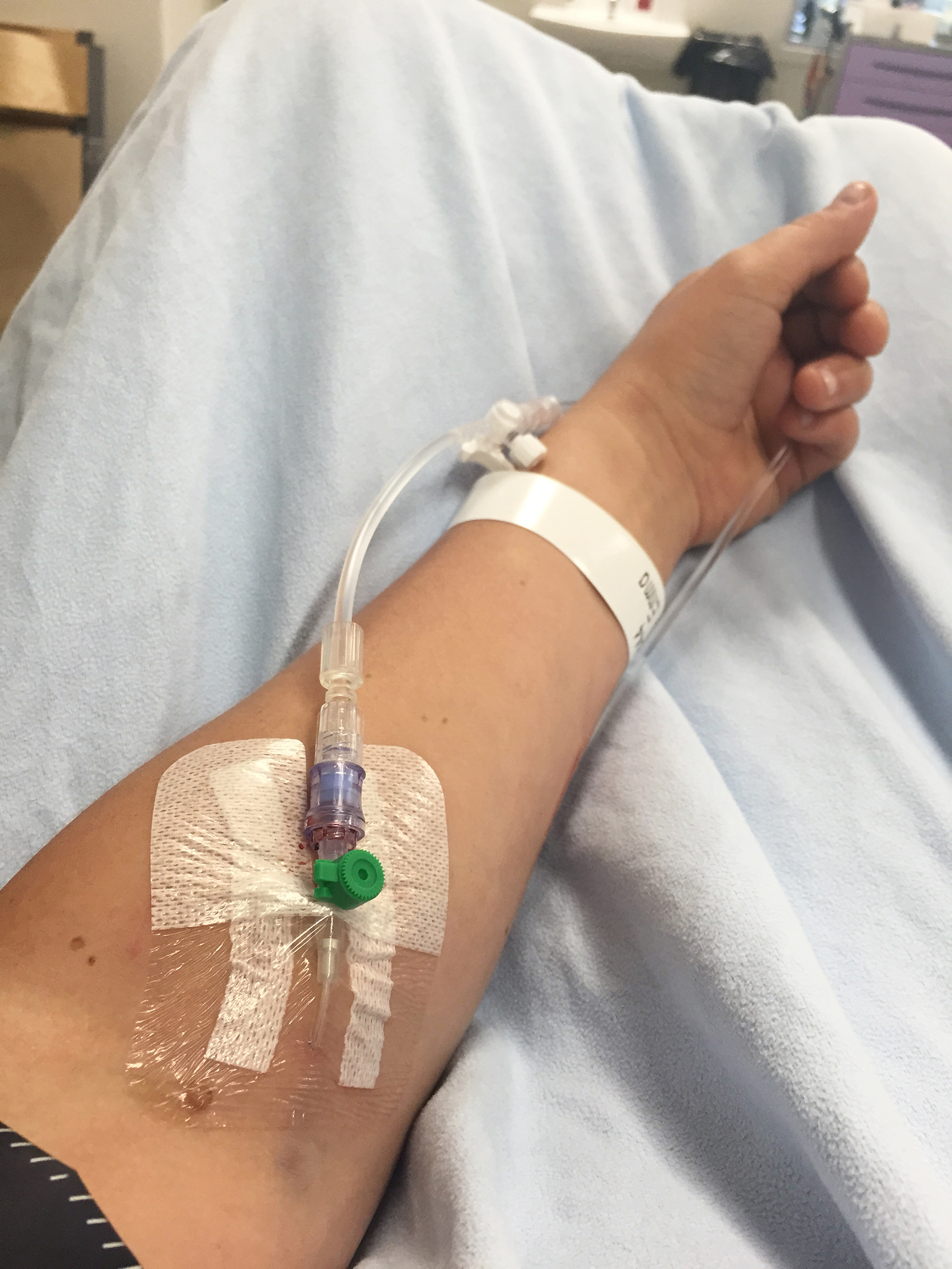 Du får en venkateter på handryggen eller i armvecket för att kunna få läkemedel eller dropp direkt i blodet.