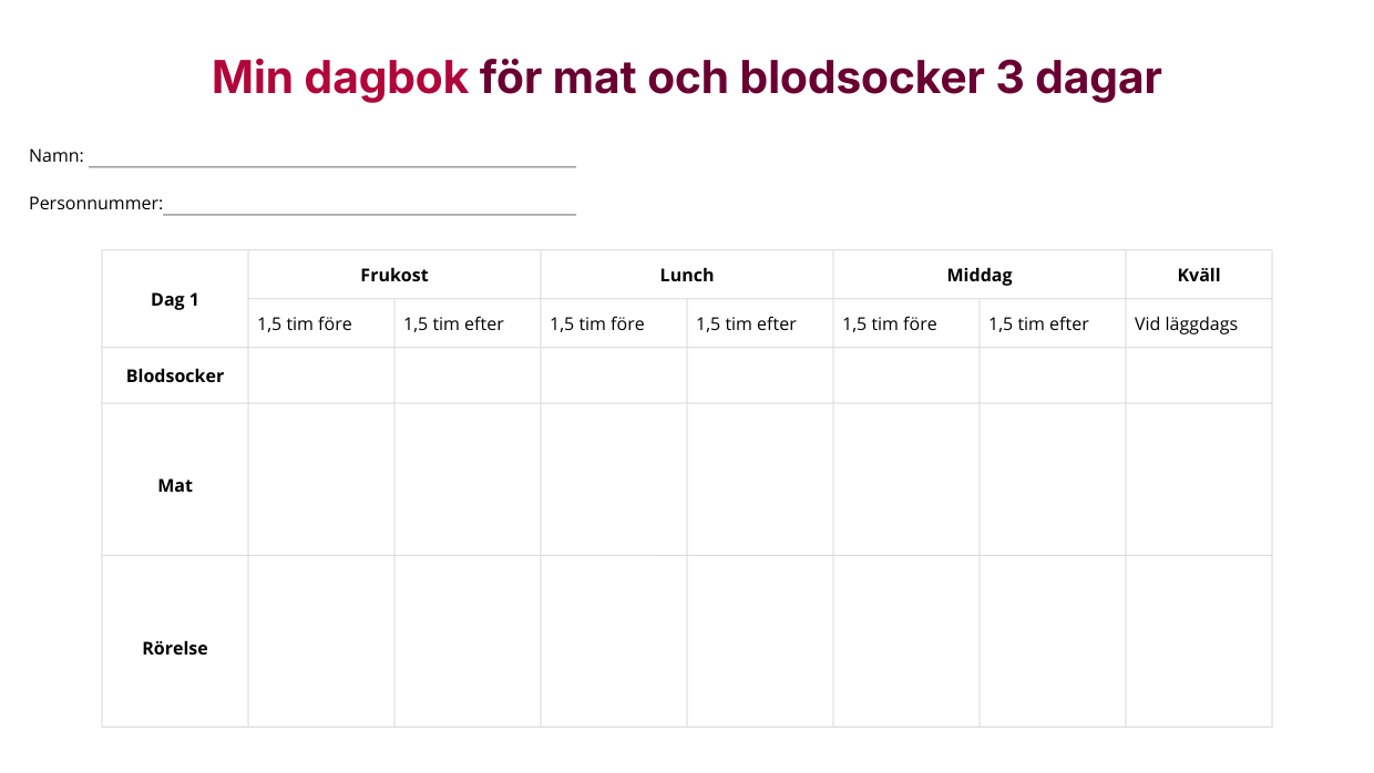 Så fyller du i din mat- och blodsockerdagbok