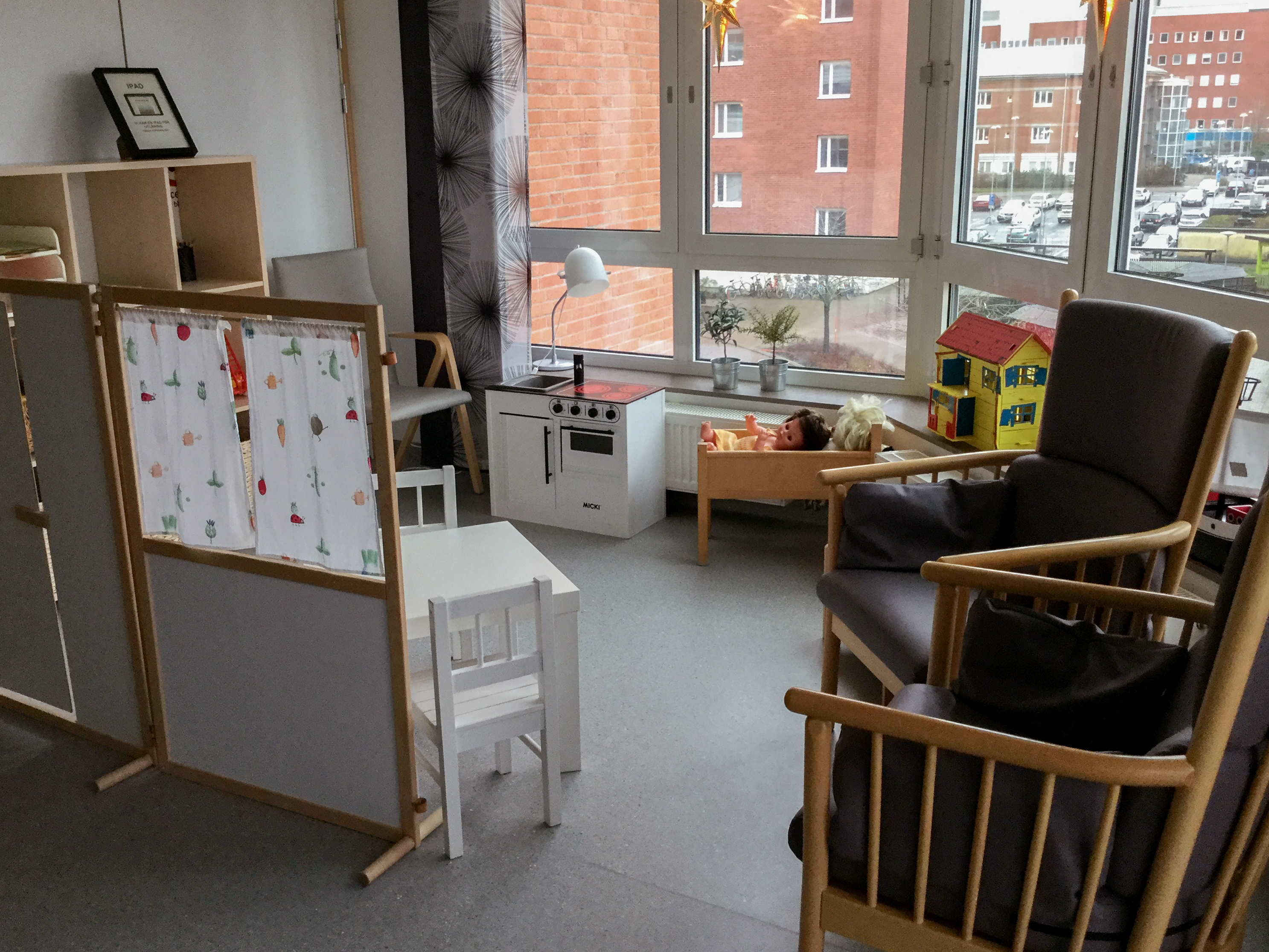 Här finns en liten lekhörna för syskon.
