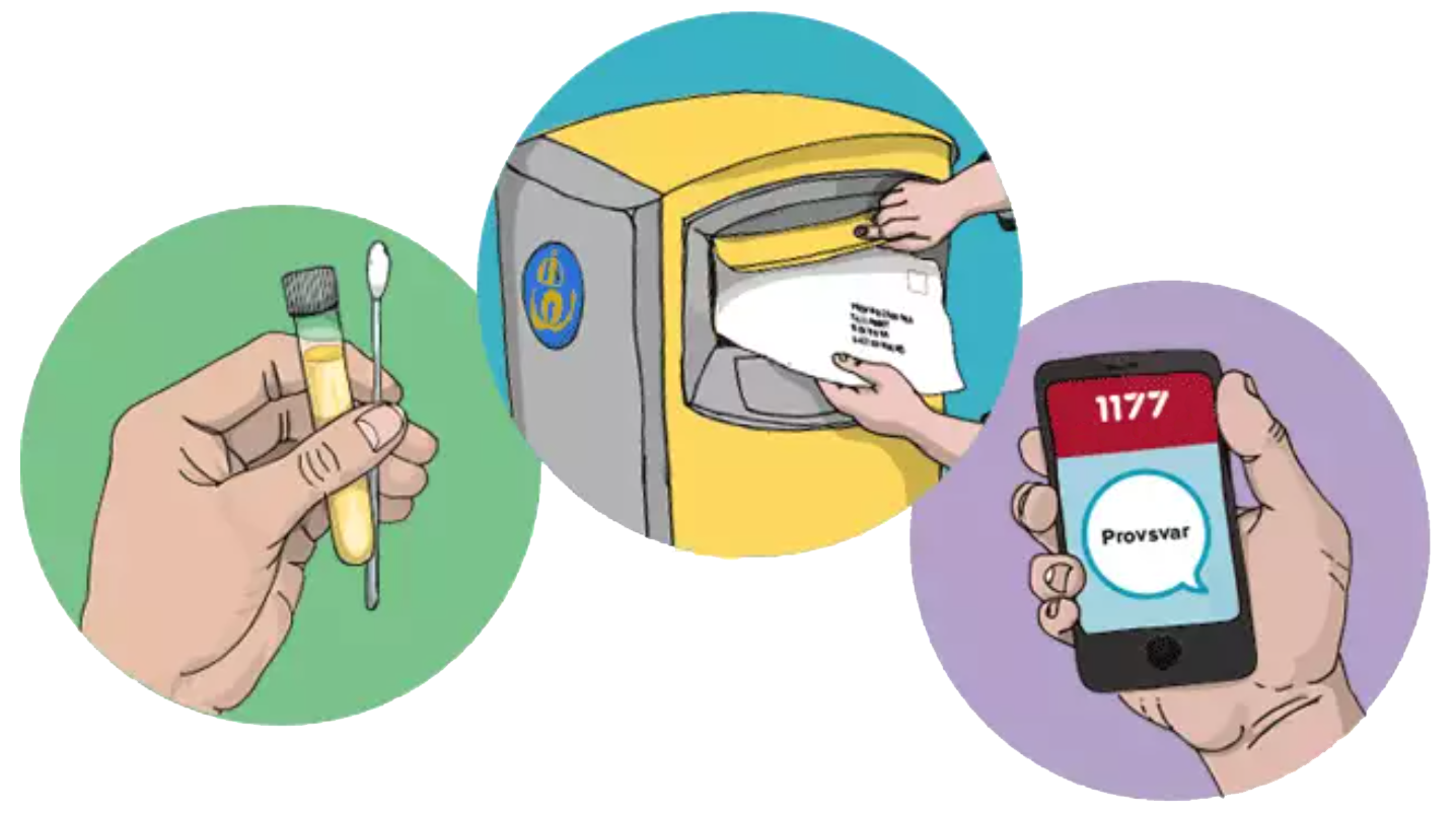 Logga in i 1177 e-tjänster med e-legitimation. Under rubriken Egen provhantering väljer du beställ test och se provsvar. Testet skickas med post i ett neutralt kuvert utan avsändare.