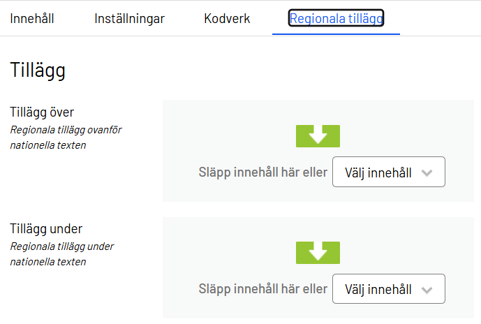 Placera det regionala tillägget sist i det nationella kapitlet. Det underlättar för besökaren att följa med i innehållet. Dessutom undviker du rubrikkrock.