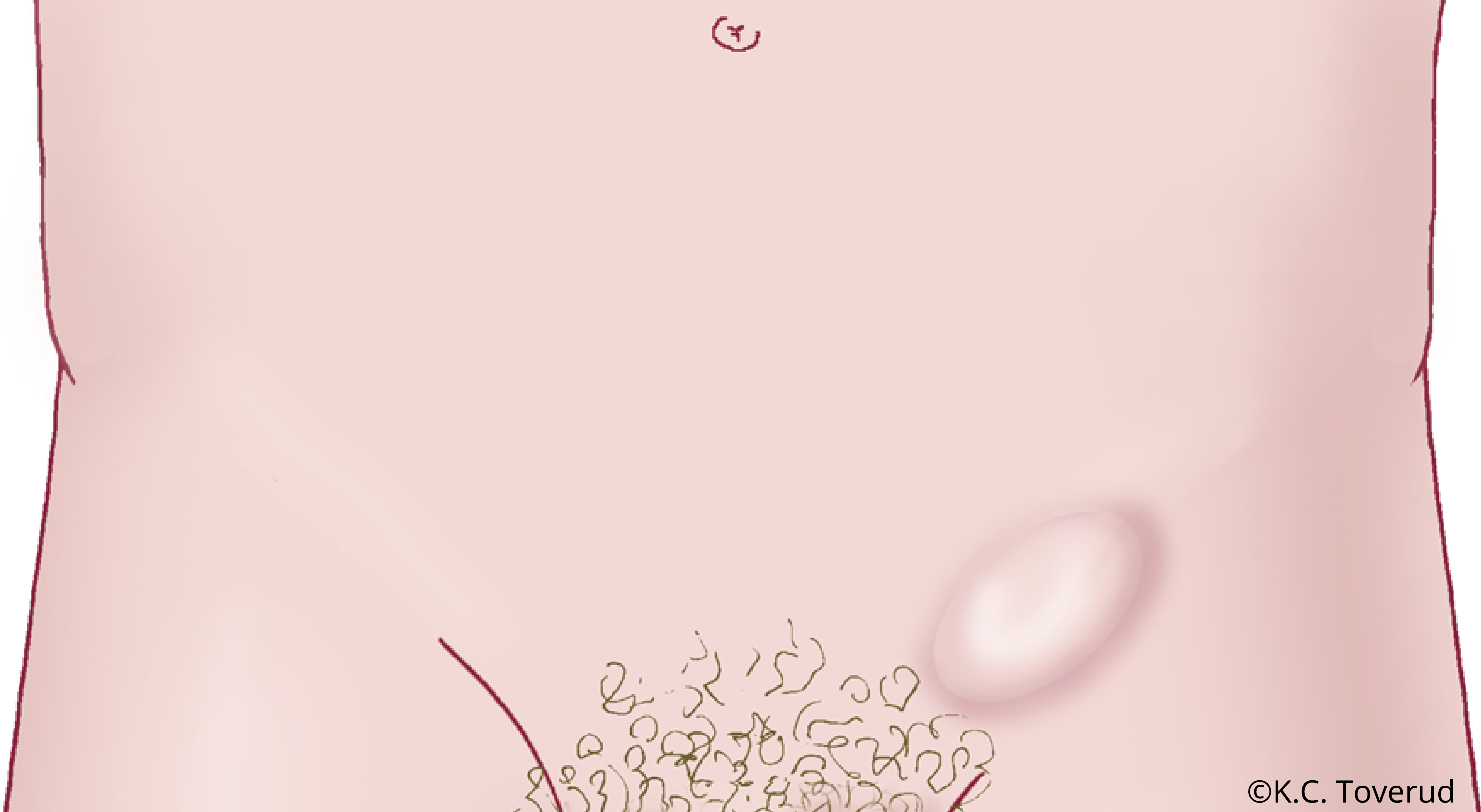 - Du ser eller känner en mjuk utbuktning under huden vid ljumskarna eller pungen. Det går att trycka tillbaka utbuktningen in i buken.