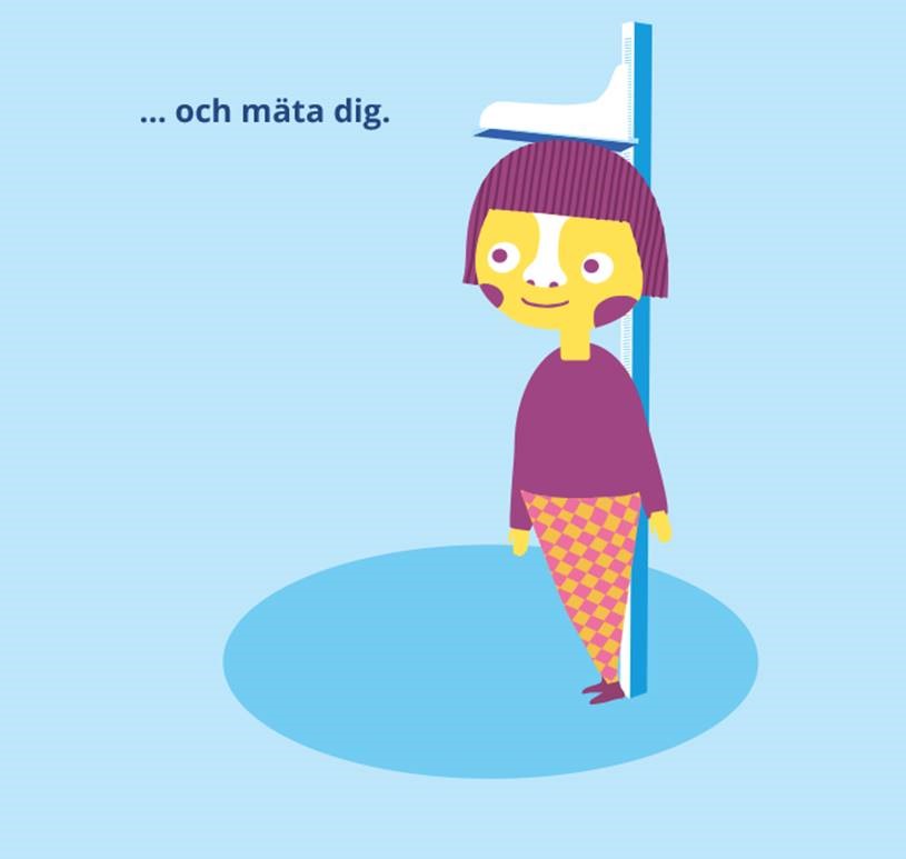 I bildspelet beskriver vi de olika momenten som ingår i hälsoundersökningen under besöket. Bläddra med pilarna.
