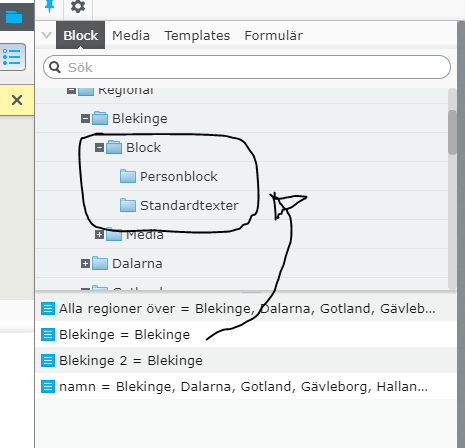 - Dra det regionala blocket från För detta block-mappen till mappen i resursbiblioteket, se bild 2.