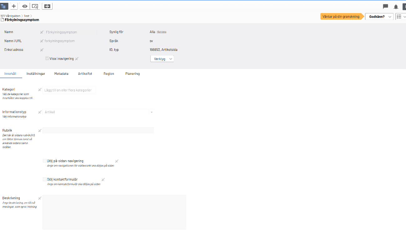 Du ska nu försätta sidan i granskningsläge och får därmed ett granskningsutkast till granskningsmiljön.