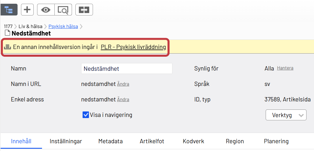 De ändringar du gör i ett projekt påverkas inte om någon annan ändrar i samma innehåll, men utanför projektet. För den redaktören tänds en gul list som talar om att sidan även ingår i ditt projekt.