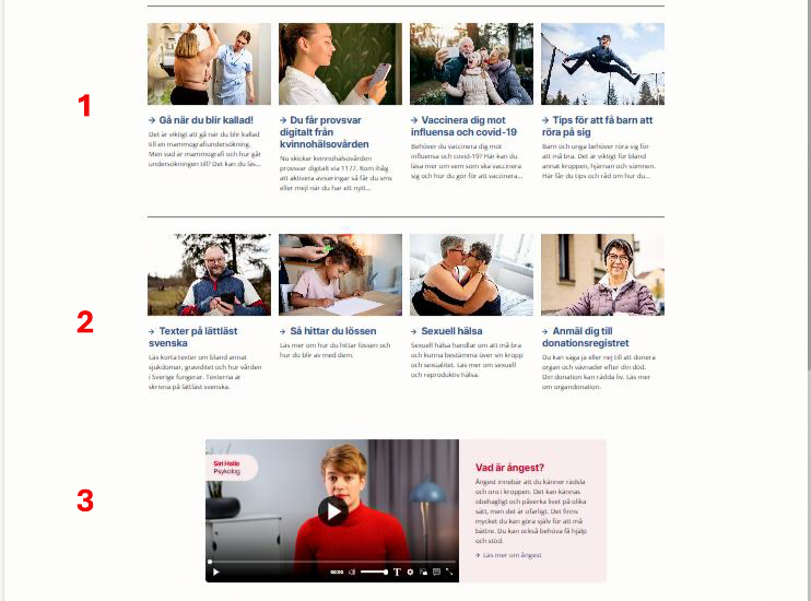 Obs! Var gärna återhållsam med antalet puffar och rader. De flesta läser 1177.se i mobilen. Där lägger sig puffarna under varandra. Det är bara ungefär 1 procent av besökarna som scrollar till botten av startsidan.