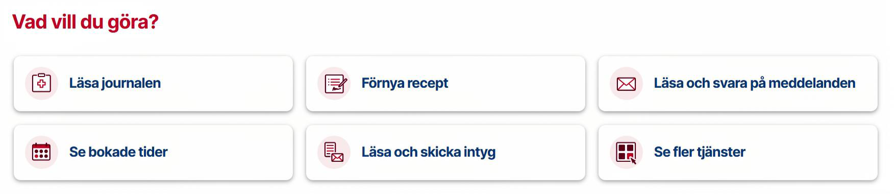 - Snabbingångar till e-tjänster, om din region har valt att ha det.