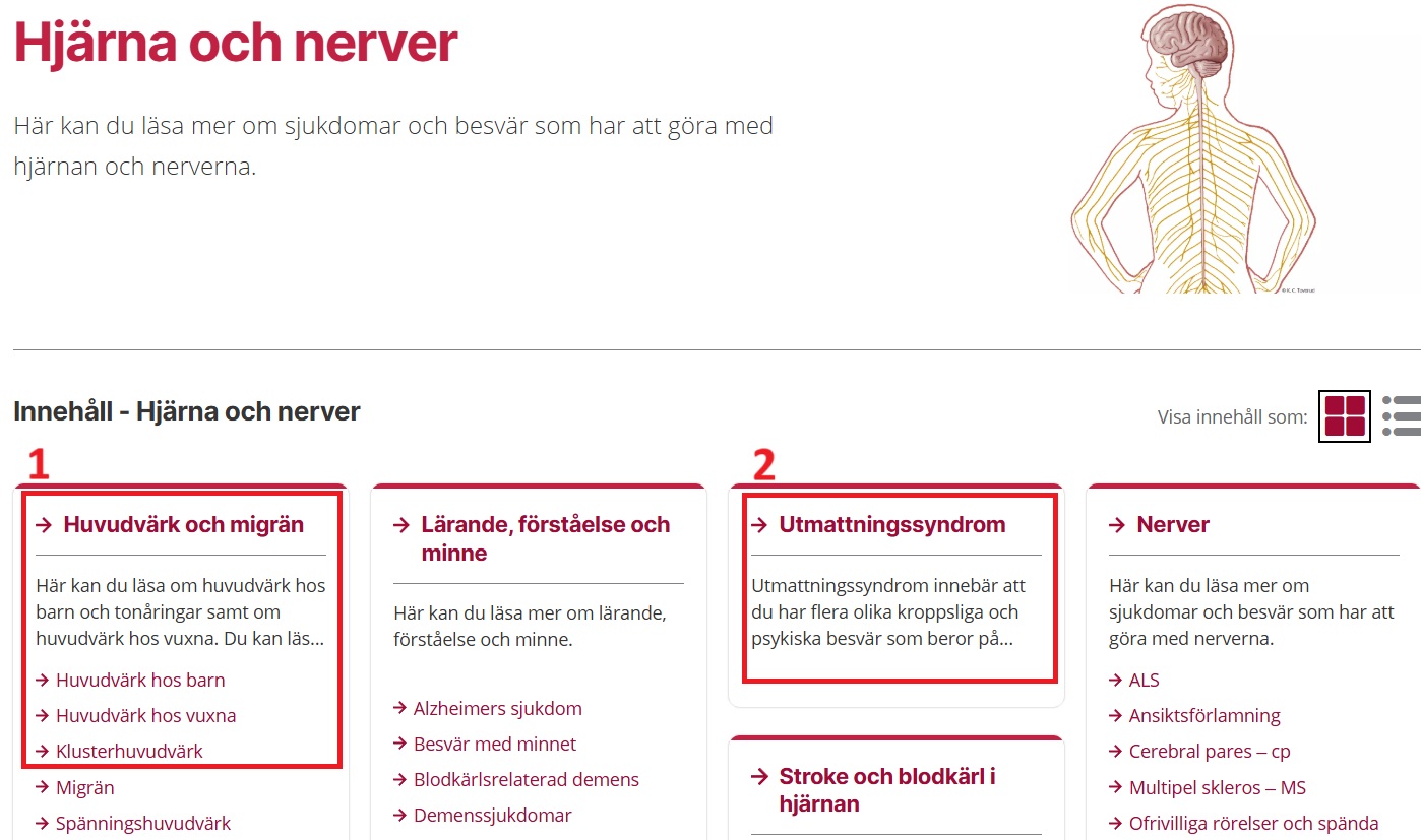 Det finns två ställen på webbplatsen med innehåll som rör psykisk hälsa:
