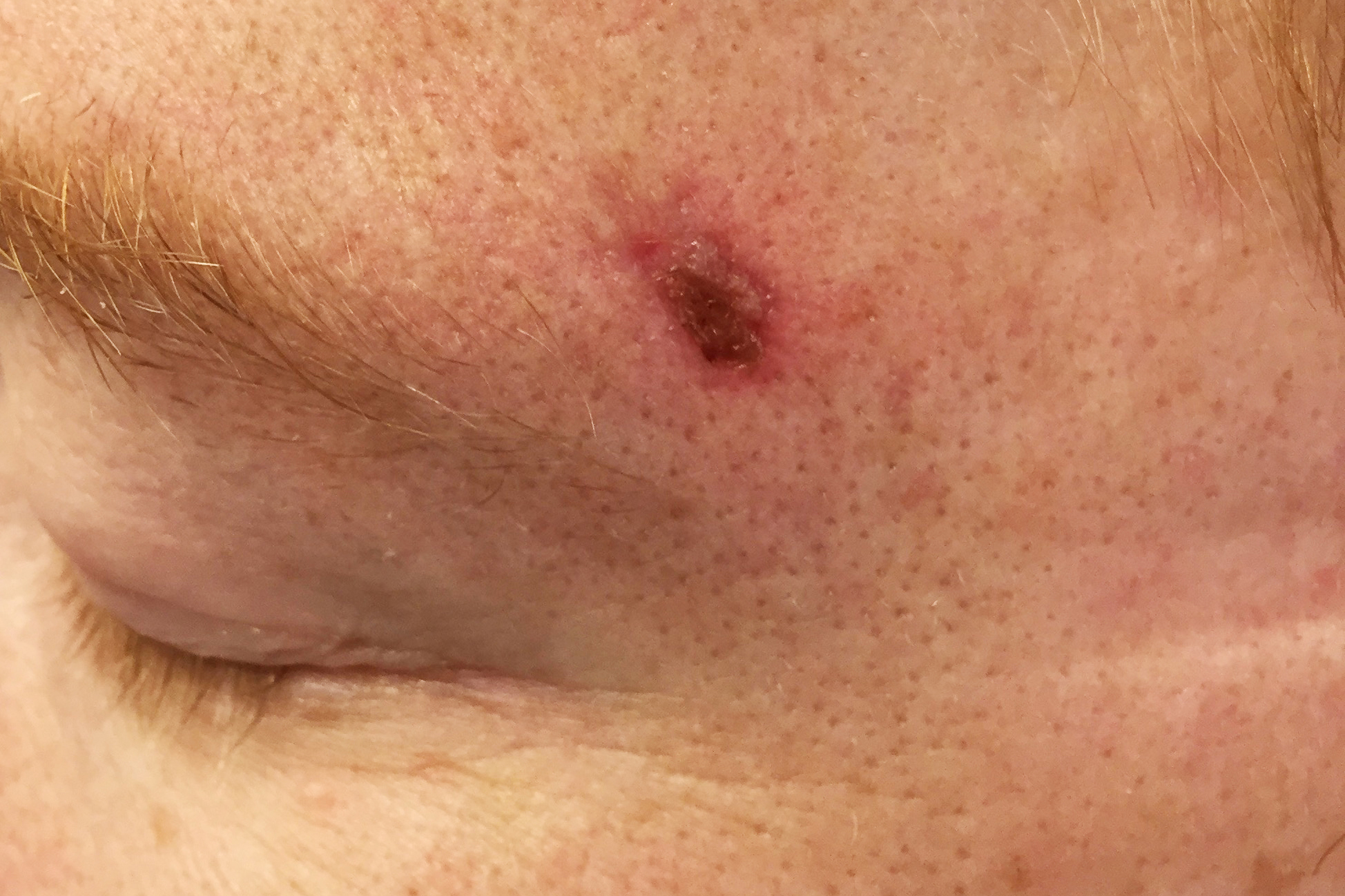 Först får du lokalbedövning. Sedan skrapas förändringen bort. Därefter använder hudläkaren ett instrument med elström för att bränna bort eventuella cancerrester. Det som har skrapats bort skickas till laboratorium om det behövs för att bekräfta bekräfta diagnosen. Såret efter behandlingen kan ta fyra till sex veckor att läka.