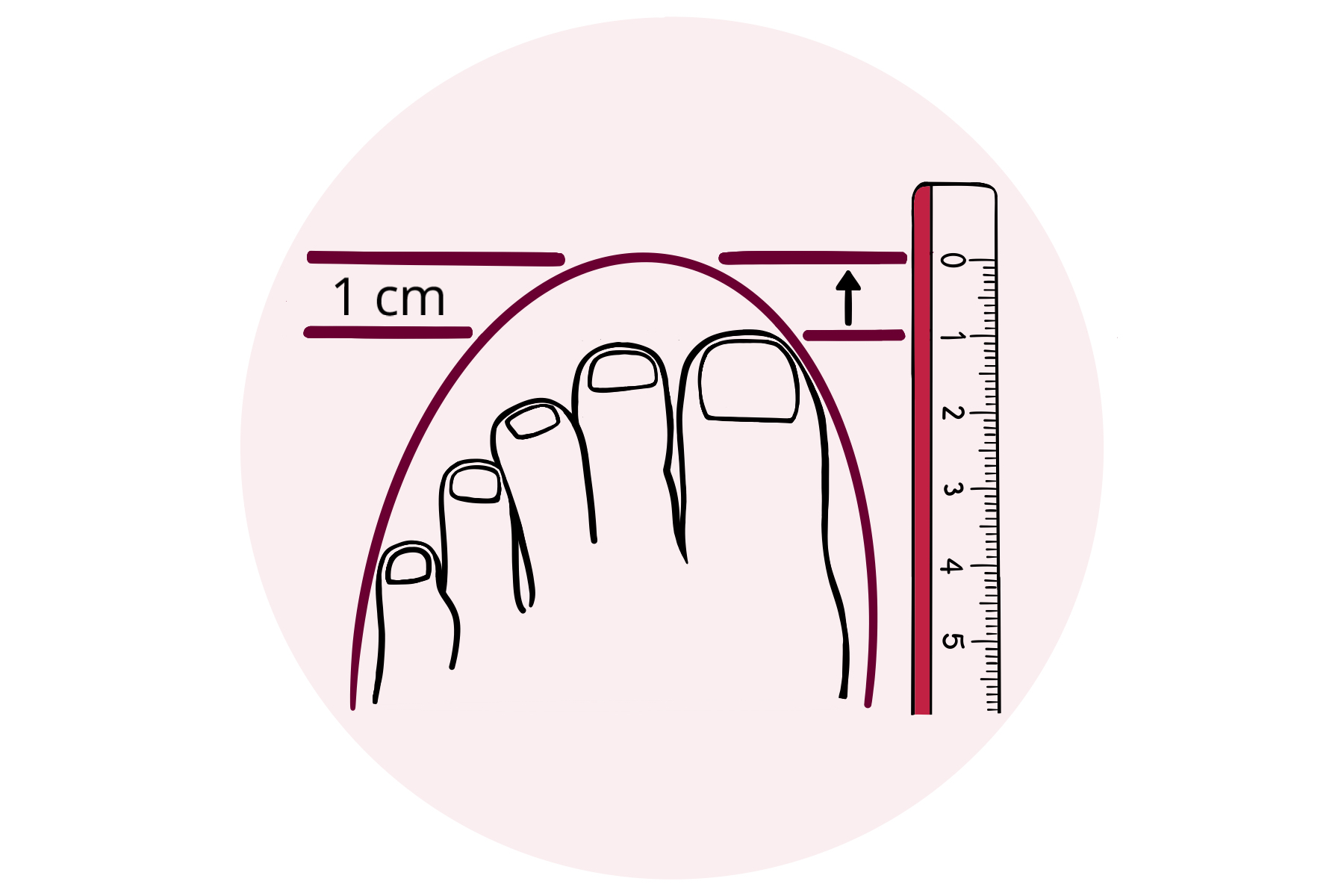 Skon ska vara rymlig, ungefär 1 centimeter längre än dina tår. Känn på insidan av skon för att se att det inte finns några vassa kanter eller sömmar.
